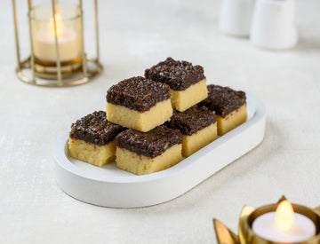 A two-layer burfi with a chocolate base, made from khoya or milk powder.