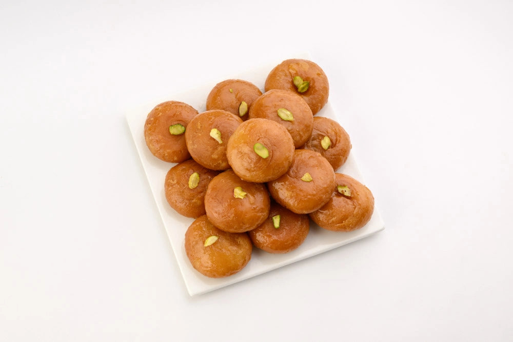Smaller version of badhusha, soft inside and flaky outside, sweetened in syrup.